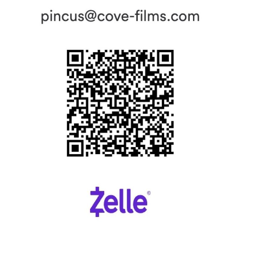 Please scan this QR code or send the money to PINCUS@COVE-FILMS.COM through your online banking or Zelle app.